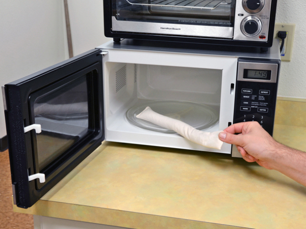 Retirez l'iOpener du micro-onde en le tenant par l'un des coins.