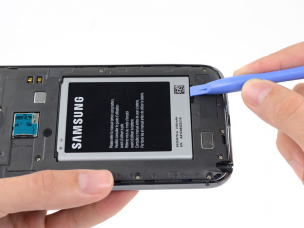 Utilisez un outil d'ouverture en plastique pour soulever la batterie de la coque. Vous devez insérer l'outil dans le creux au-dessus de la batterie pour le faire.