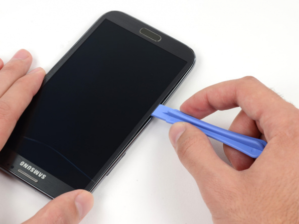 Lorsque vous arrivez au coin de votre téléphone, faites glisser doucement l'outil d'ouverture en plastique autour de lui.