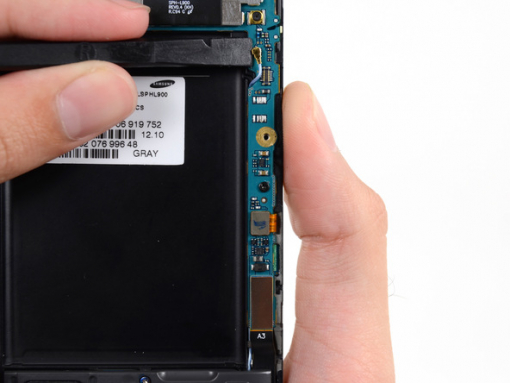 Utilisez un outil d'ouverture en plastique pour soulever la batterie de la coque. Vous devez insérer l'outil dans le creux au-dessus de la batterie pour le faire.