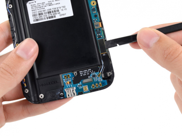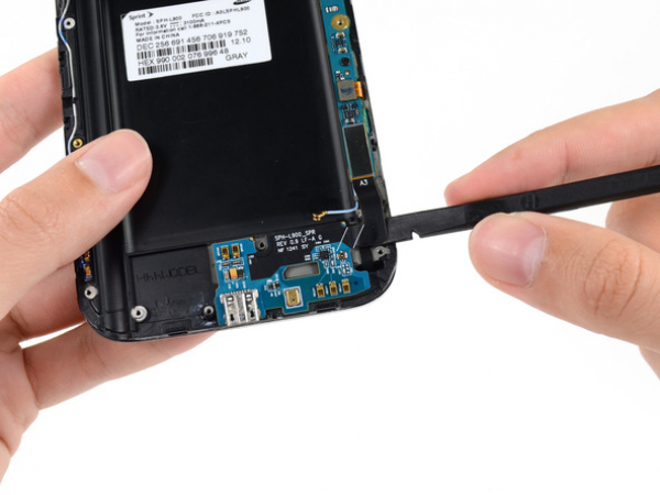 Utilisez un outil d'ouverture en plastique pour soulever la batterie de la coque. Vous devez insérer l'outil dans le creux au-dessus de la batterie pour le faire.