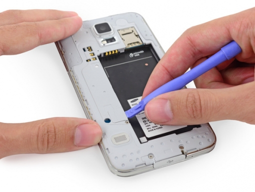 Faites glisser le médiator autour du coin de votre téléphone doucement, et arrêtez -vous avant la grille haut-parleur, située à la partie supérieure du téléphone.