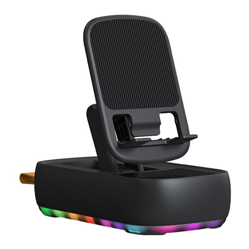 F15 Support de téléphone pliable 3-en-1 avec haut-parleur Bluetooth et banque d'alimentation 1200mAh - Lumières RVB, ports USB-C et USB-A