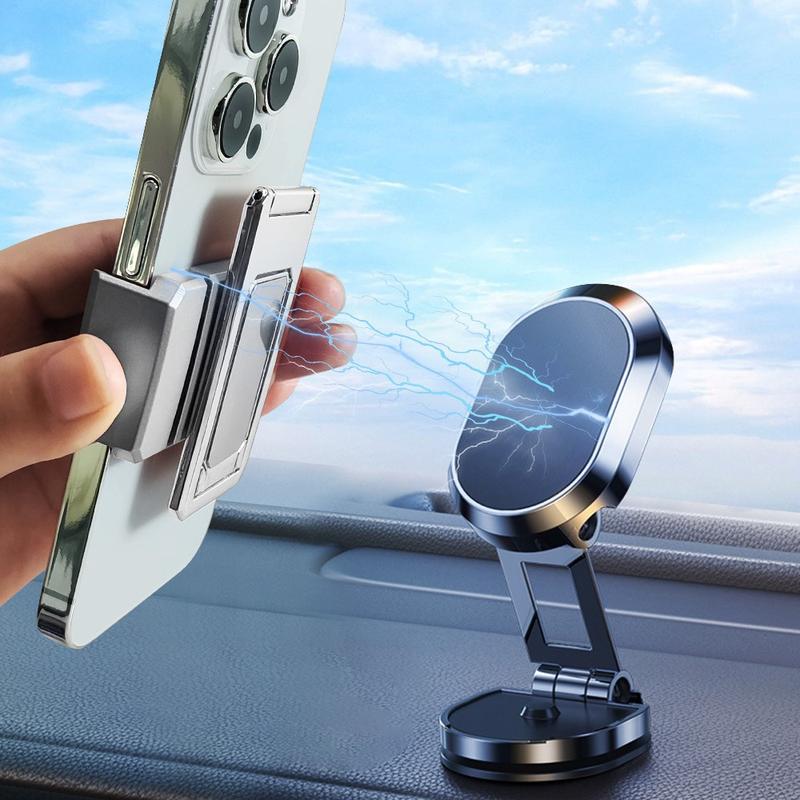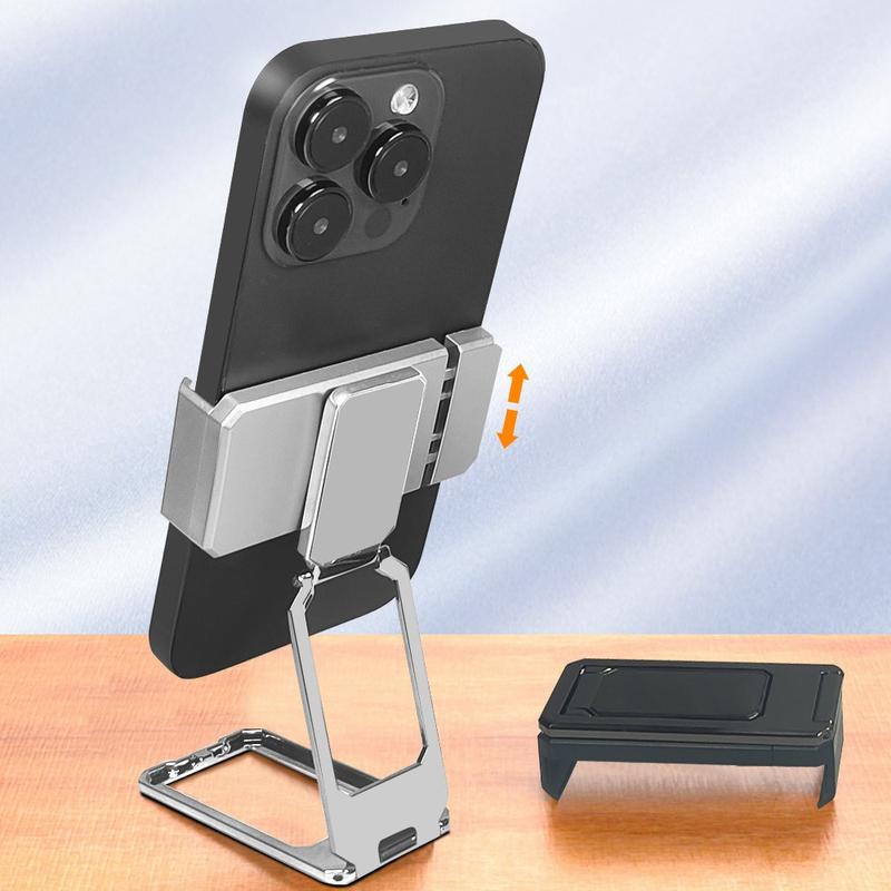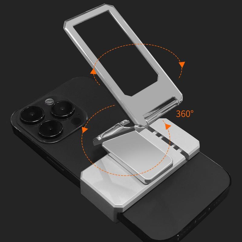 Folding Metal Desktop Phone Kickstand 360-Degree Rotating Zinc Alloy Cell Phone Back Clip Stand - Black