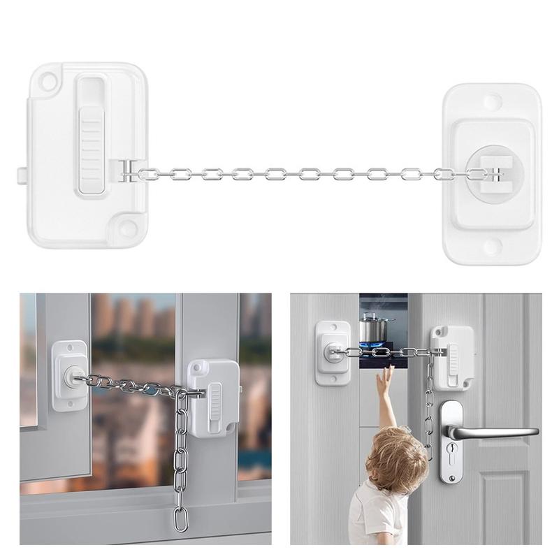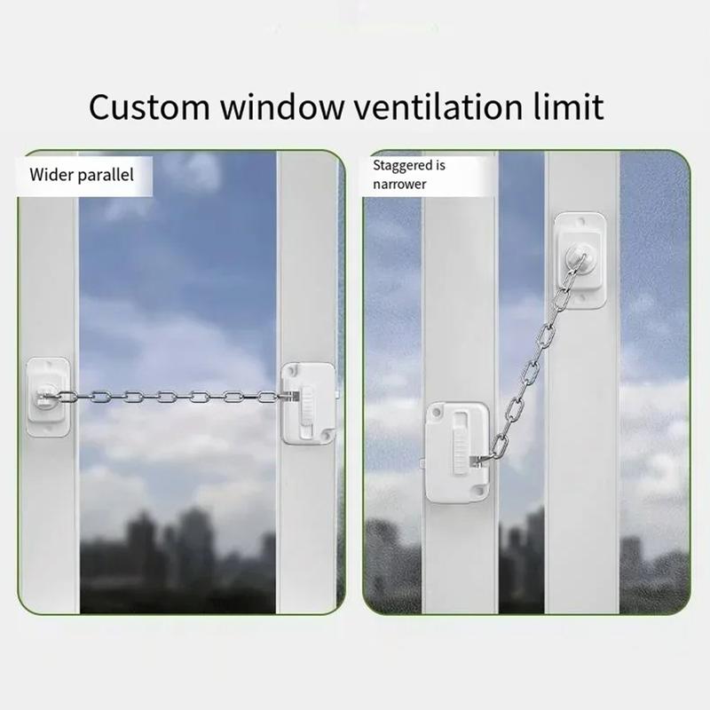 La longueur réglable de la chaîne vous permet de décider jusqu'où une fenêtre ou une porte peut s'ouvrir. Cette fonction assure une bonne circulation de l'air tout en gardant les enfants et les animaux domestiques en sécurité à l'intérieur, ce qui en fait un excellent accessoire de sécurité pour les maisons et les appartements.