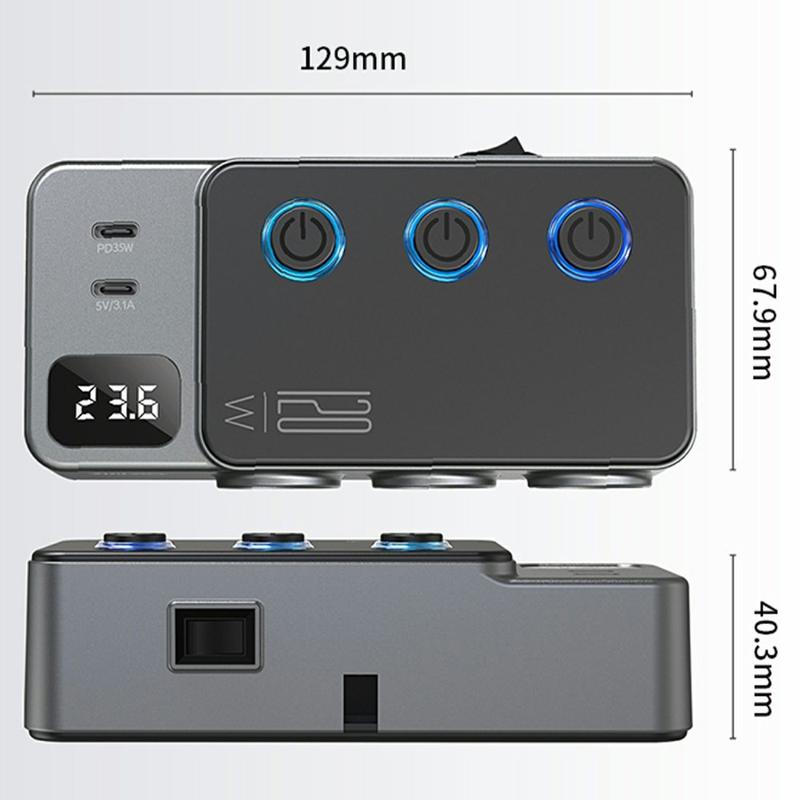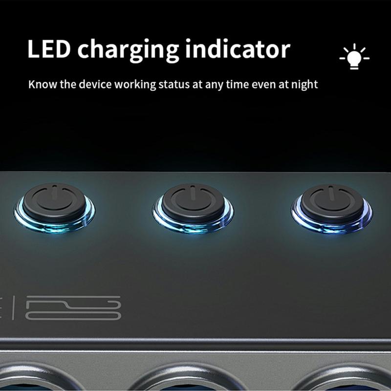 - 7 ports de charge au total - Comprend 3 prises allume-cigare, 3 ports USB-A, 1 USB-C et 1 port de charge rapide PD