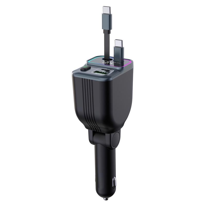 GC15 Chargeur de voiture 83W avec moniteur de tension en temps réel et câbles rétractables USB-C