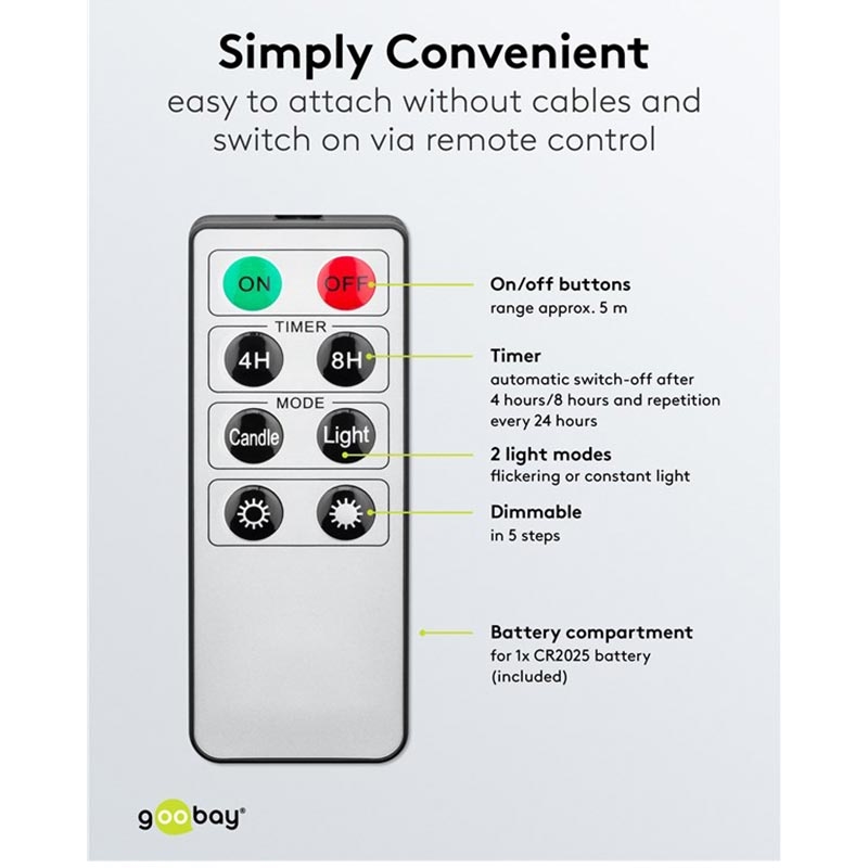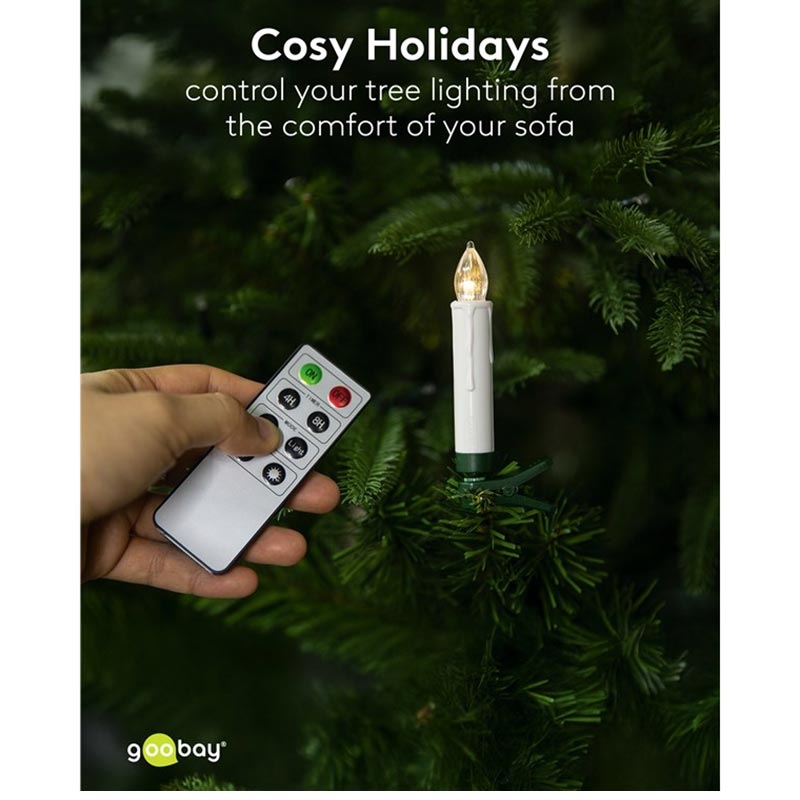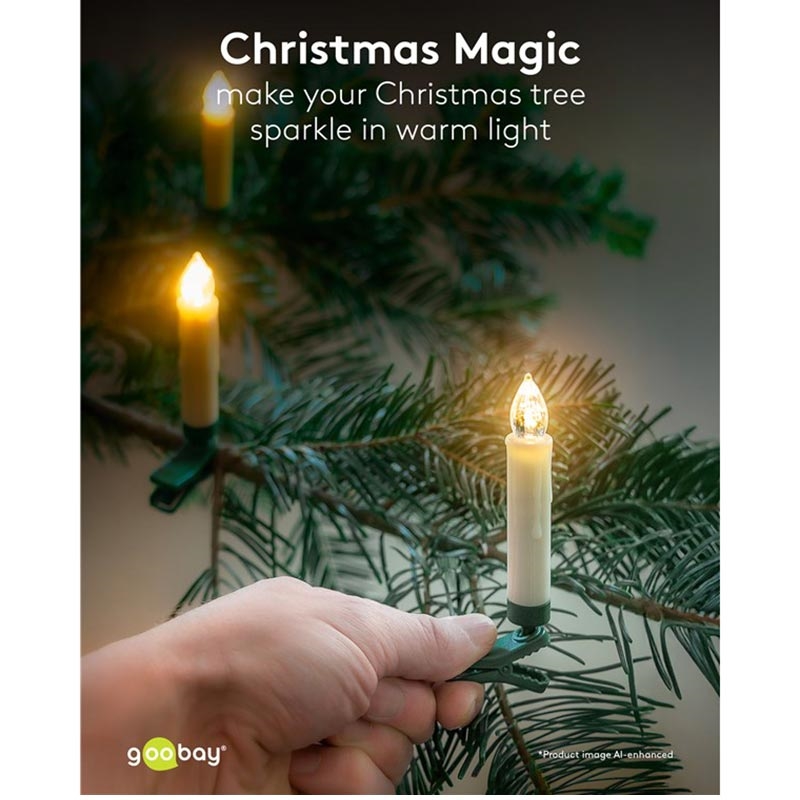 • Goobay Set de bougies de Noël LED sans fil - 20 bougies à intensité variable avec pinces, télécommande et minuterie (2600 K)