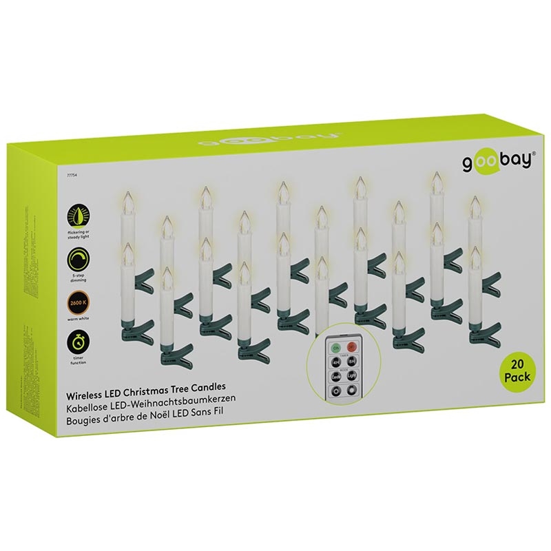 Goobay Bougies de Noël LED sans fil - 20 Pcs. - Blanc chaud