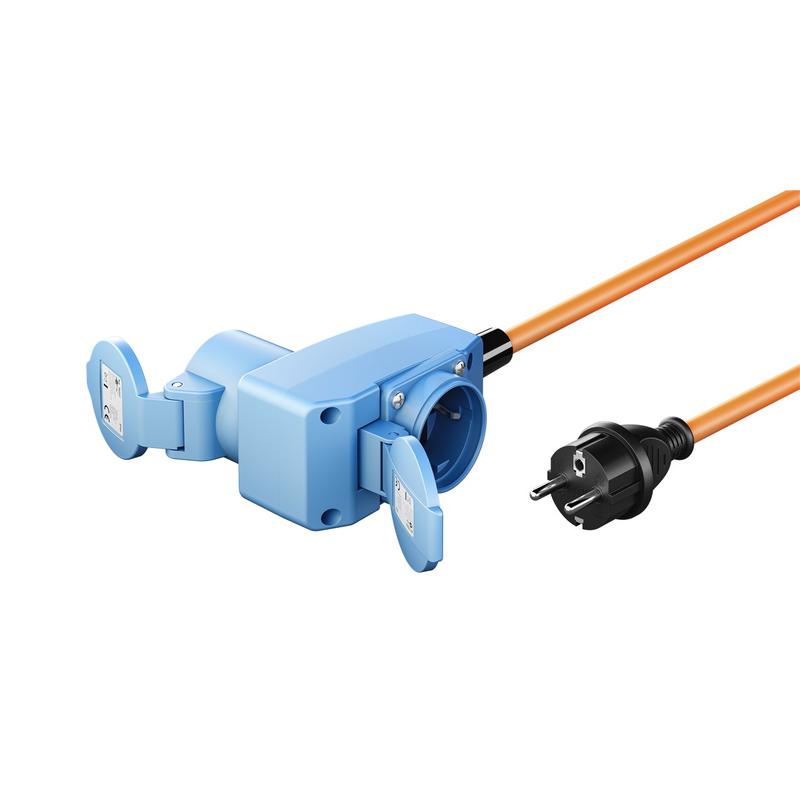 • Goobay CEE Adapter Cable 1.5 m - Safety Plug (Type E/F) to 90° CEE Coupler with Safety Socket, IP44 Outdoor Power Cable