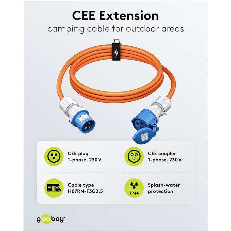 Goobay CEE Rallonge de câble de camping - CEE Plug à CEE Coupler - 5m, 16A, 3680W