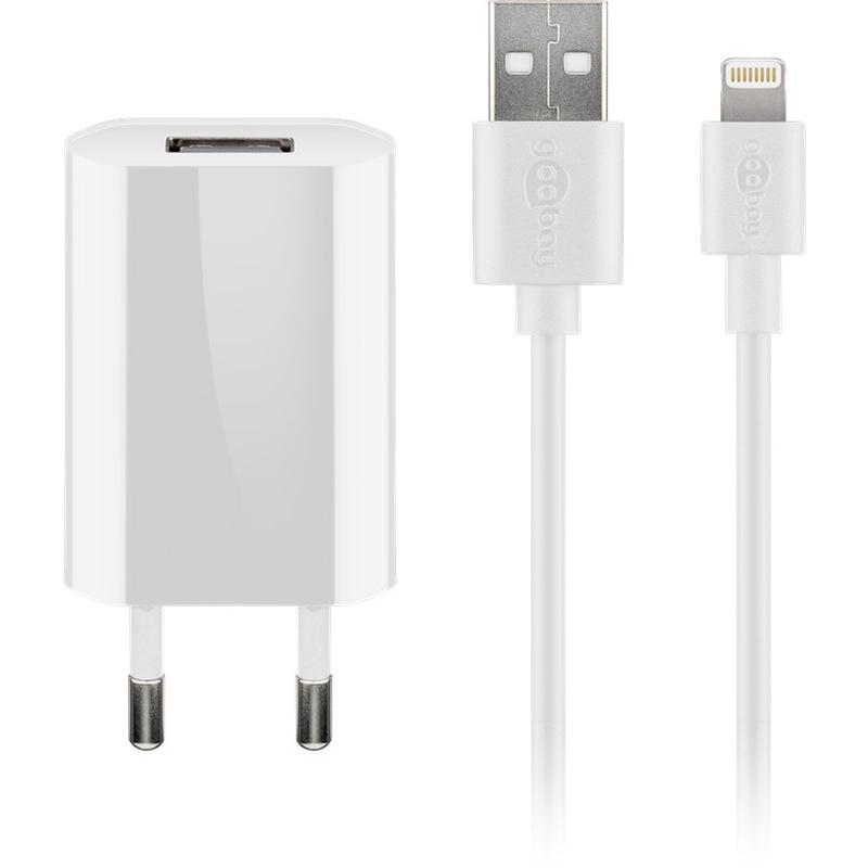 Goobay Chargeur USB avec câble Lightning - Certifié MFi, prise EU