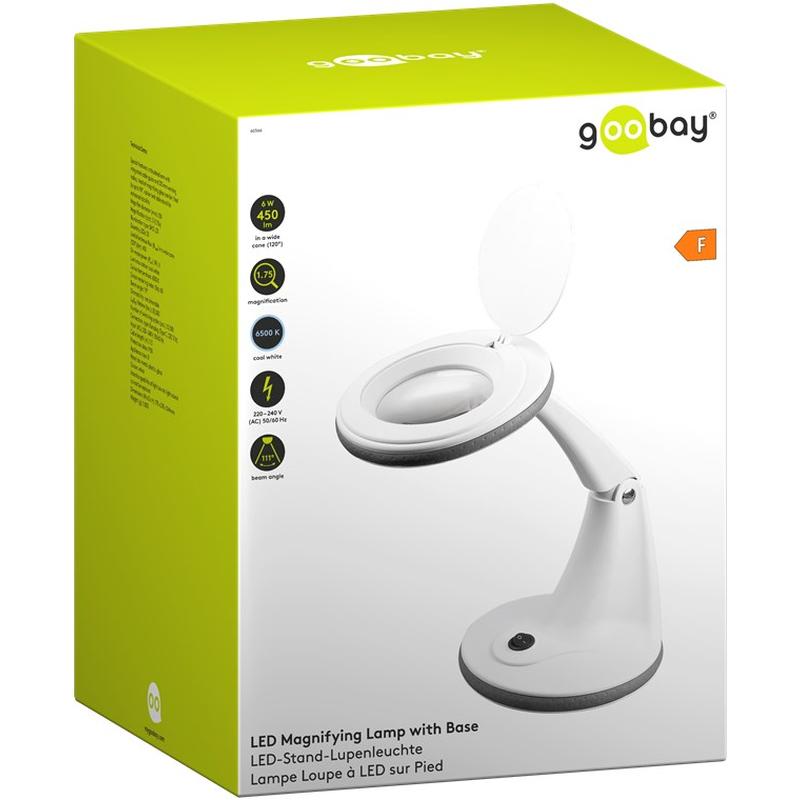 • Goobay Lampe loupe LED avec socle - Anneau lumineux 6W, lentille en verre 100 mm, 1.75x (3 dioptries), 450 lm, 6500K Cool White, bras ajustable (Noir)