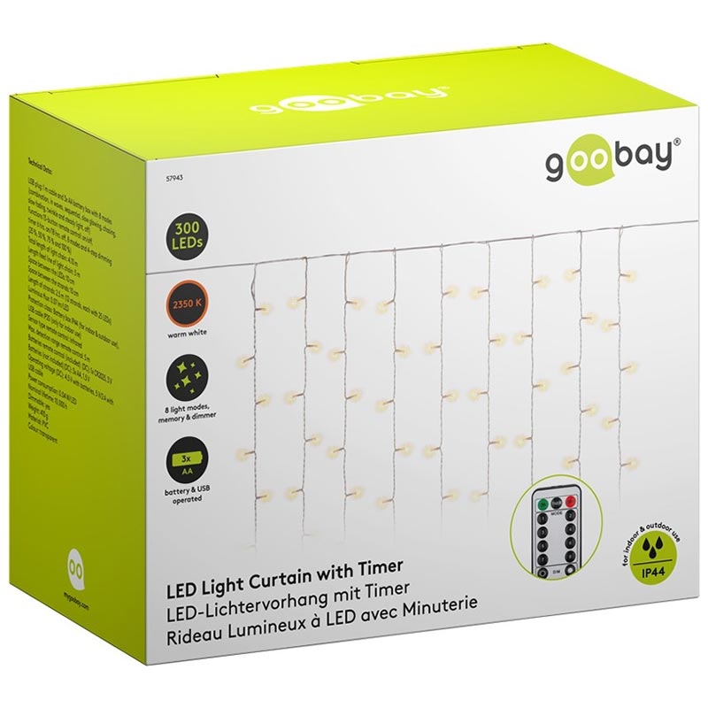 Goobay Rideau lumineux LED avec minuterie - 300 LED - Blanc chaud