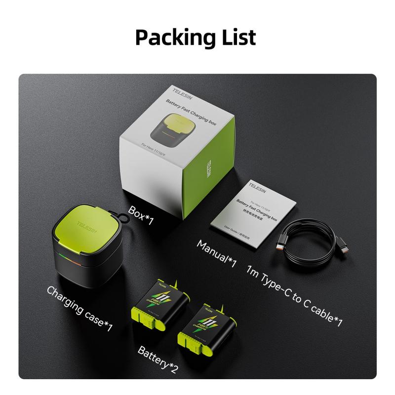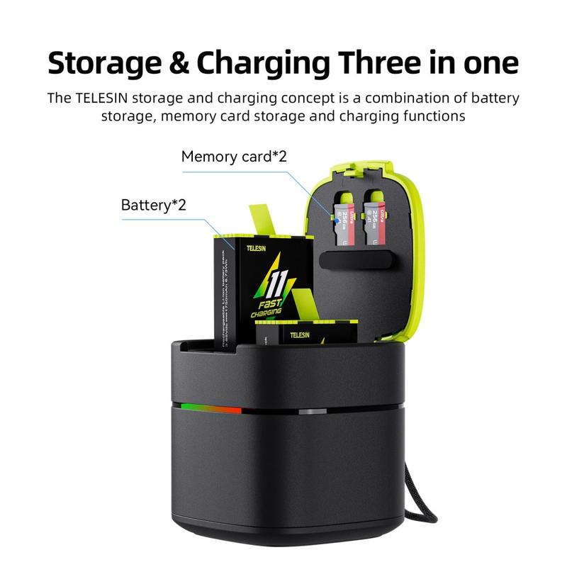 TELESIN GP-FCK-B11 2-Slot Battery Charger & Storage Box for GoPro Hero 11 - Solution d'alimentation rapide et fiable