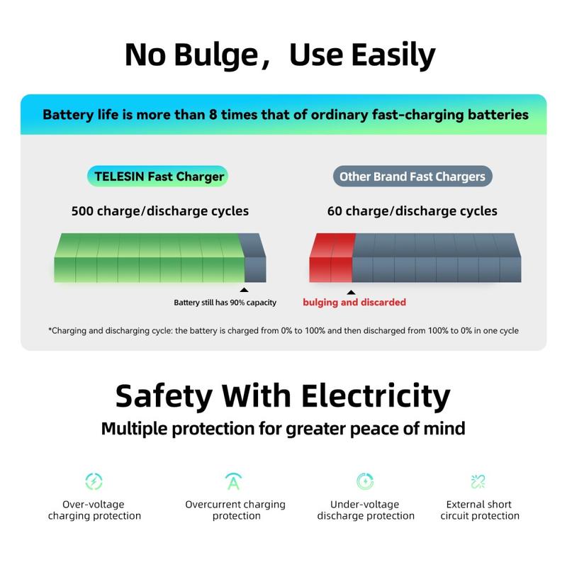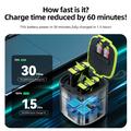 - Fonctions de sécurité intégrées - Équipé d'une protection contre les surintensités, les surtensions, les surchauffes et les courts-circuits pour une charge en toute sécurité.