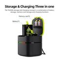 - L'étui de rangement intégré permet d'organiser et de protéger les batteries.