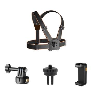 Ensemble de sangle thoracique pour caméra d'action GP-032 - Base magnétique à dégagement rapide, mini-adaptateur 1/4" et clip pour téléphone pour prise de vue POV