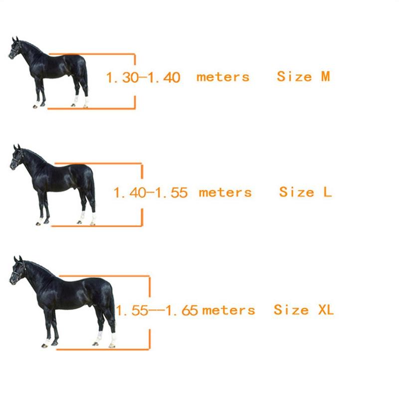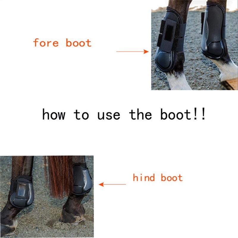 - Forme anatomique : les guêtres avant 255 x 112 mm couvrent les tendons ; les guêtres arrière 158 x 118 mm protègent l'articulation du boulet arrière.