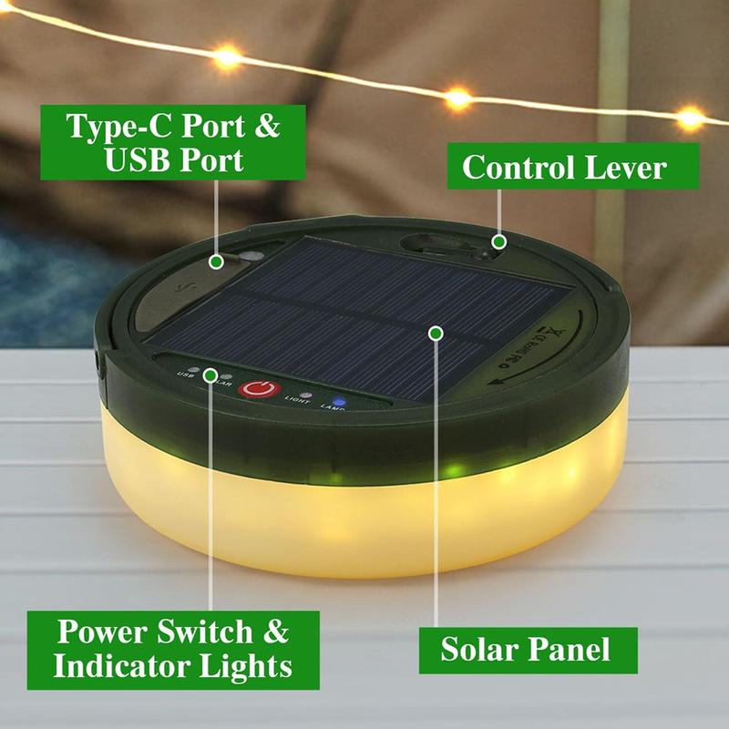 - Créer une lueur chaleureuse autour des tentes, des camping-cars ou des emplacements de festival, puis recharger un téléphone pendant la nuit.