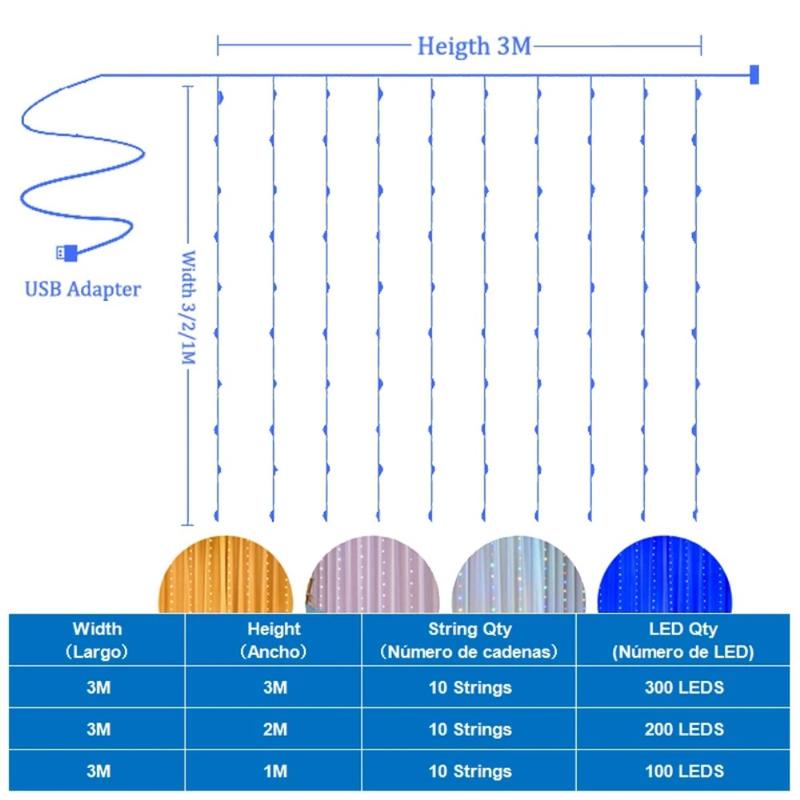 Créez une atmosphère magique avec la guirlande lumineuse de 3m x 2m à 200 LED, conçue pour Noël, les mariages, les fêtes, la décoration intérieure, etc. Avec 8 modes d'éclairage réglables, une télécommande pratique et une alimentation USB économe en énergie, ces rideaux lumineux apportent chaleur, élégance et polyvalence à n'importe quel espace.