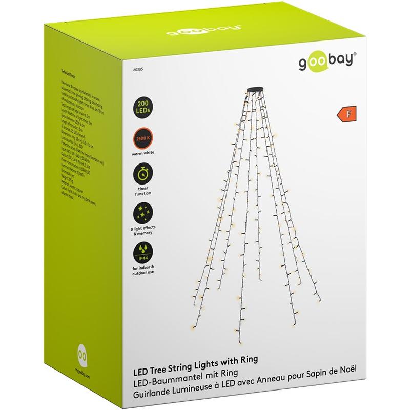 Guirlandes lumineuses LED pour arbres de Noël avec anneau / descente et minuterie - 200 LED