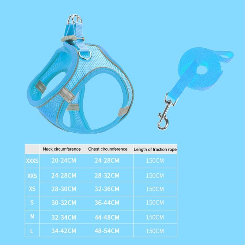 Harnais réfléchissant pour chat/chien avec laisse / Gilet en maille respirante pour animaux de compagnie