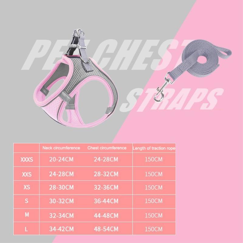 Harnais réfléchissant pour chat/chien avec laisse / Gilet en maille respirante pour animaux de compagnie