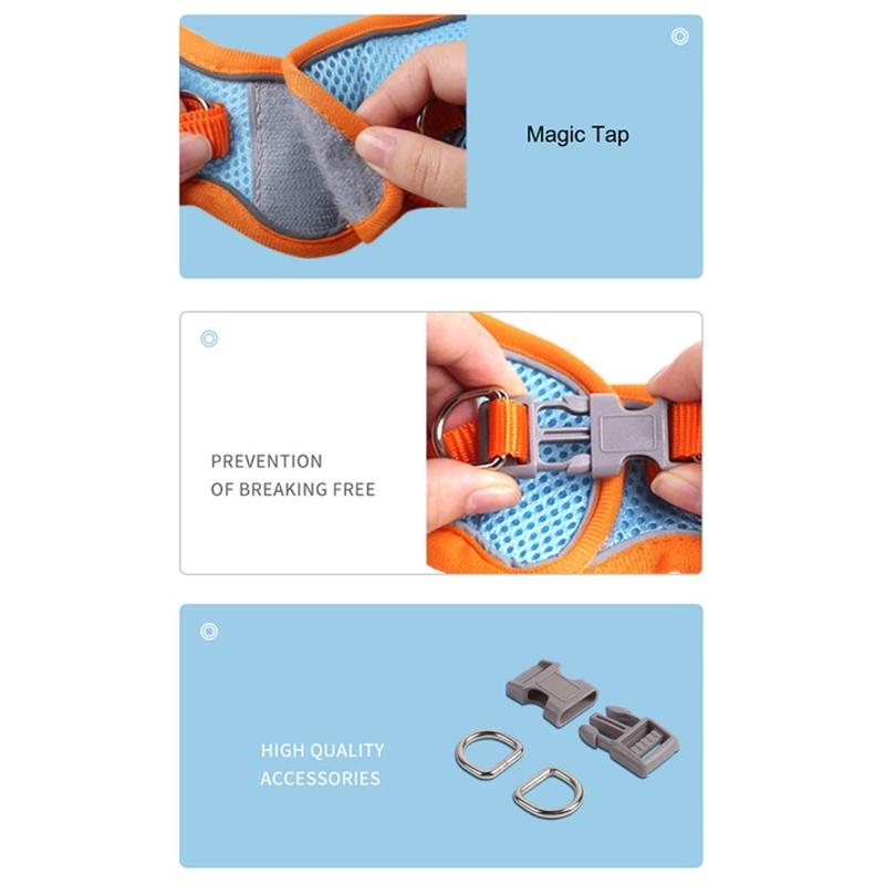 Notre harnais réfléchissant pour chien et notre veste respirante en maille pour chat combinent confort, sécurité et style, ce qui en fait un accessoire essentiel pour les propriétaires d'animaux de compagnie. La conception de type gilet réduit la tension du cou, tandis que le matériau en maille respirante garde votre animal au frais et à l'aise. Les bandes réfléchissantes assurent la visibilité dans des conditions de faible luminosité, améliorant ainsi la sécurité. La laisse incluse et le système d'attache sécurisé offrent commodité et tranquillité d'esprit lors des promenades et des activités de plein air.