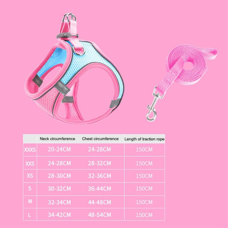 Harnais réfléchissant pour chat/chien avec laisse / Gilet en maille respirante pour animaux de compagnie
