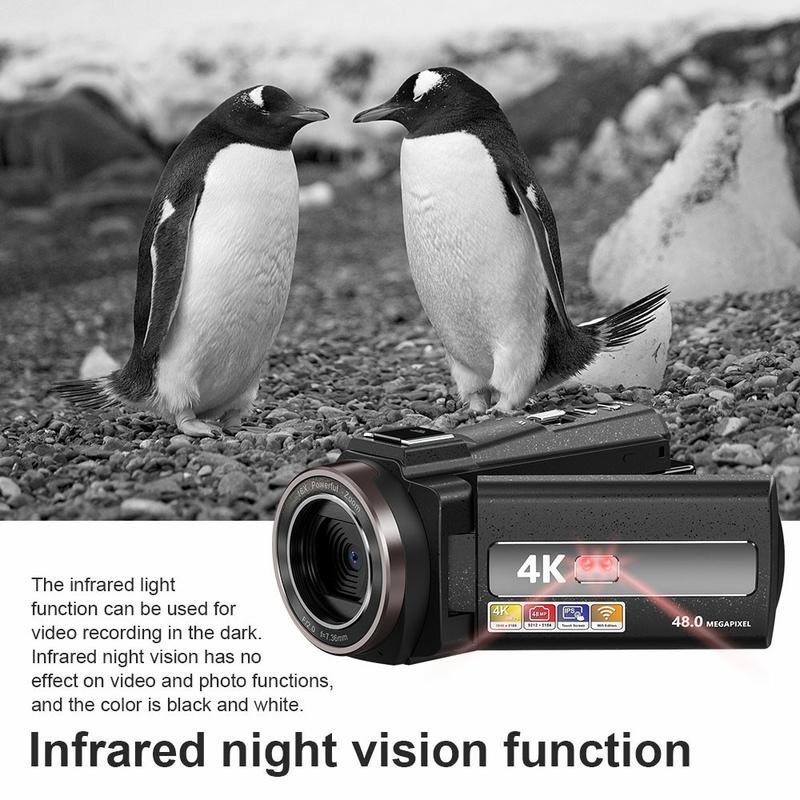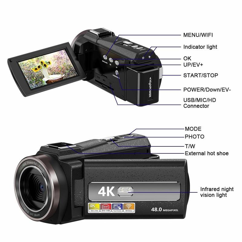 HDV-254KM Caméra vidéo numérique 4K - Caméscope Ultra HD 48MP avec écran tactile 3.0", zoom 16X, vision nocturne IR et WiFi