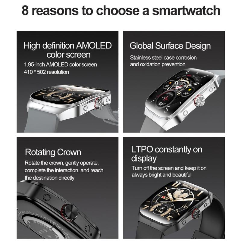Montre intelligente HK80 avec écran AMOLED incurvé, appel Bluetooth, moniteur de santé et NFC