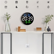 - Tableau de bord complet Hygro-Thermo - affiche simultanément l'heure, la date, le jour de la semaine, la température intérieure (°C) et l'humidité relative (%HR) pour une vérification rapide du climat avant de partir.