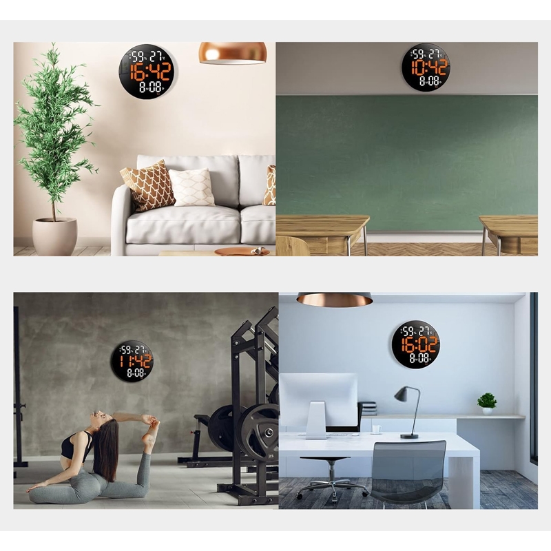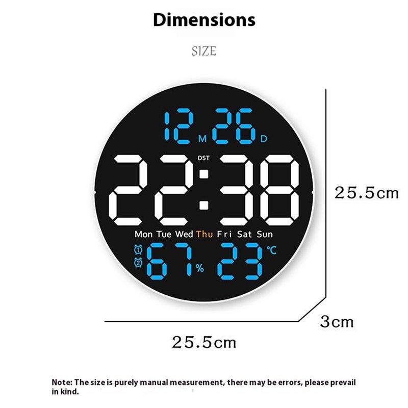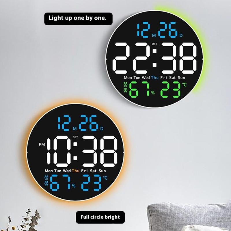 6672 Horloge murale silencieuse à LED - Affichage de la température et de l'humidité sur 25,5 cm avec veilleuse d'ambiance et télécommande