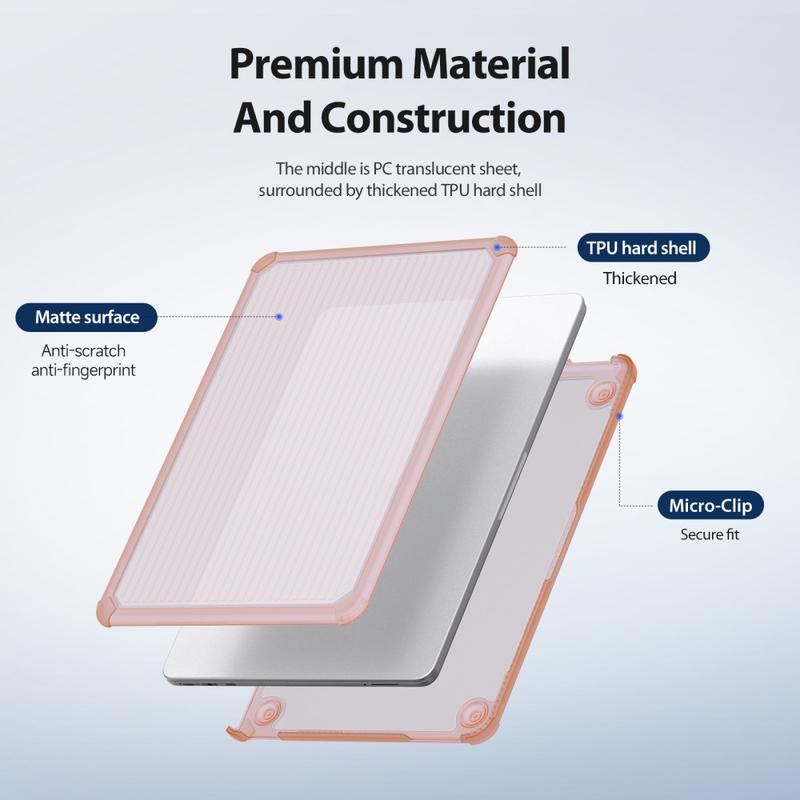 Sa conception moulée avec précision garantit un ajustement parfait grâce à des découpes précises et une ouverture et une fermeture fluides. Des patins antidérapants surélevés sur la face inférieure améliorent la stabilité et favorisent la circulation de l'air pour une meilleure dissipation de la chaleur, tandis que le système de micro-clips maintient la coque solidement en place et permet de l'installer ou de la retirer facilement en cas de besoin.