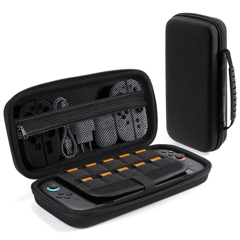 - Large espace intérieur pour les chargeurs, les câbles de données et les grips Joy-Con, pour que tout soit bien rangé au même endroit.