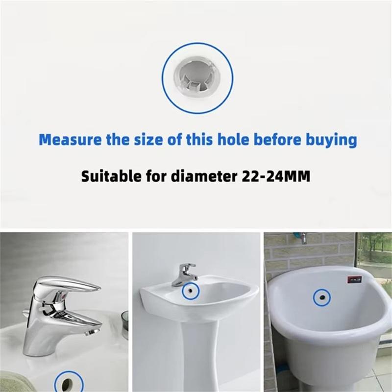- Adaptation universelle : Convient à la plupart des lavabos sur pied ou à poser dotés d'orifices de trop-plein standard.