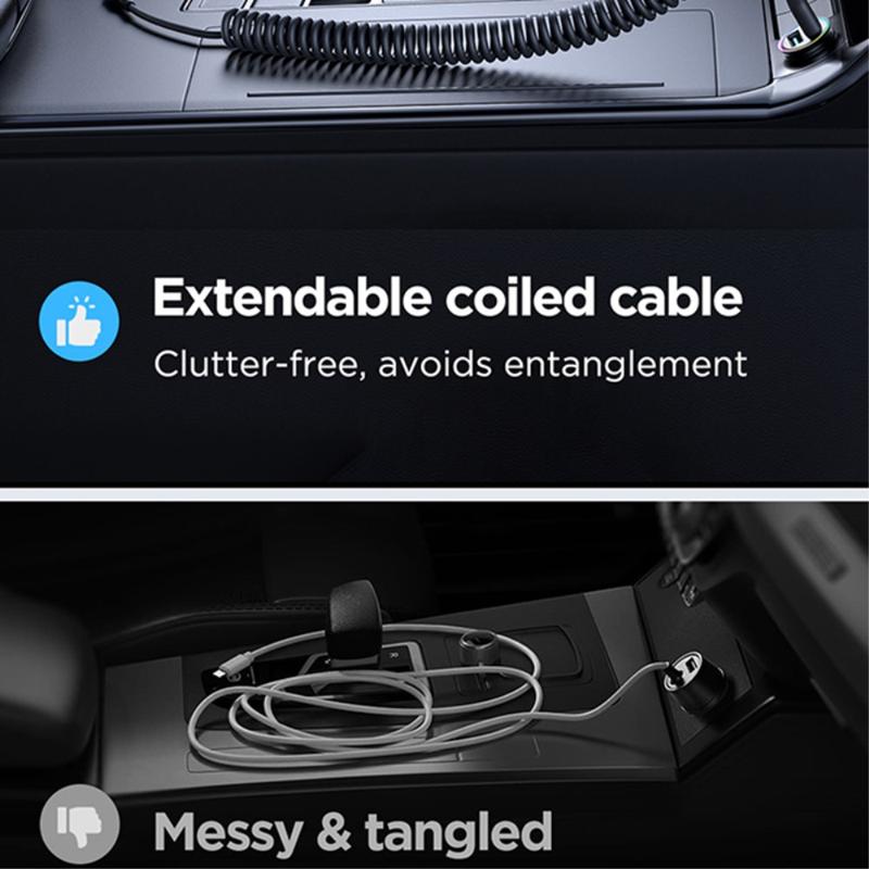 - Trajets en voiture : la bobine reste bien rangée autour du levier de vitesse, tout en s'étirant suffisamment pour les passagers arrière.