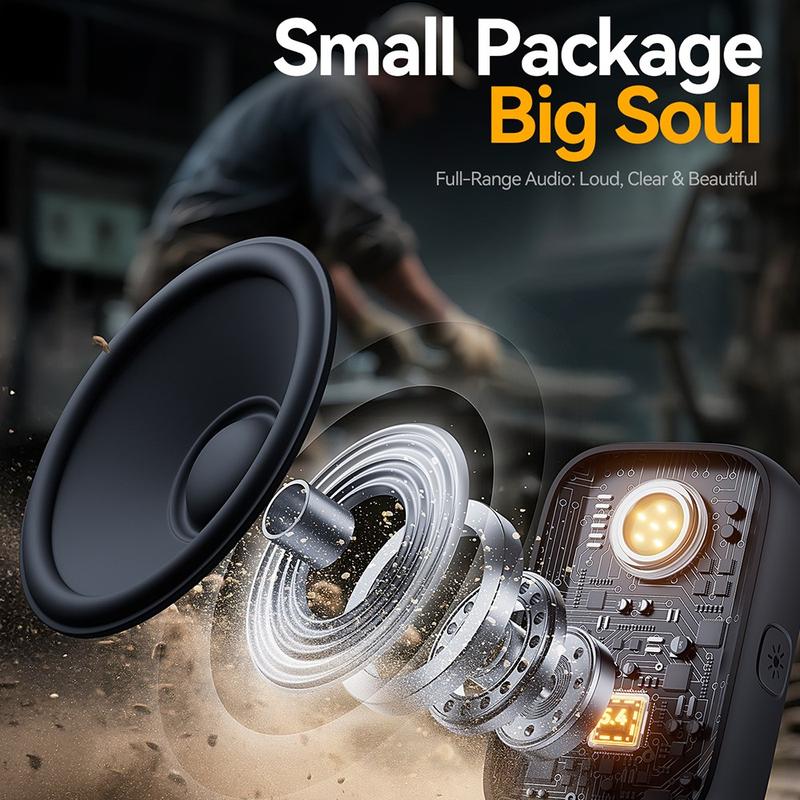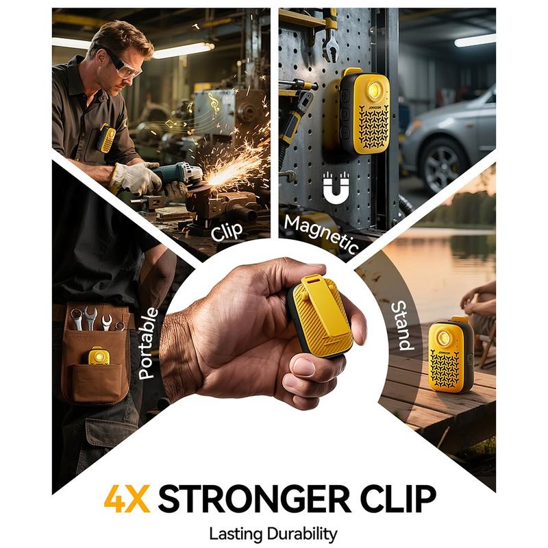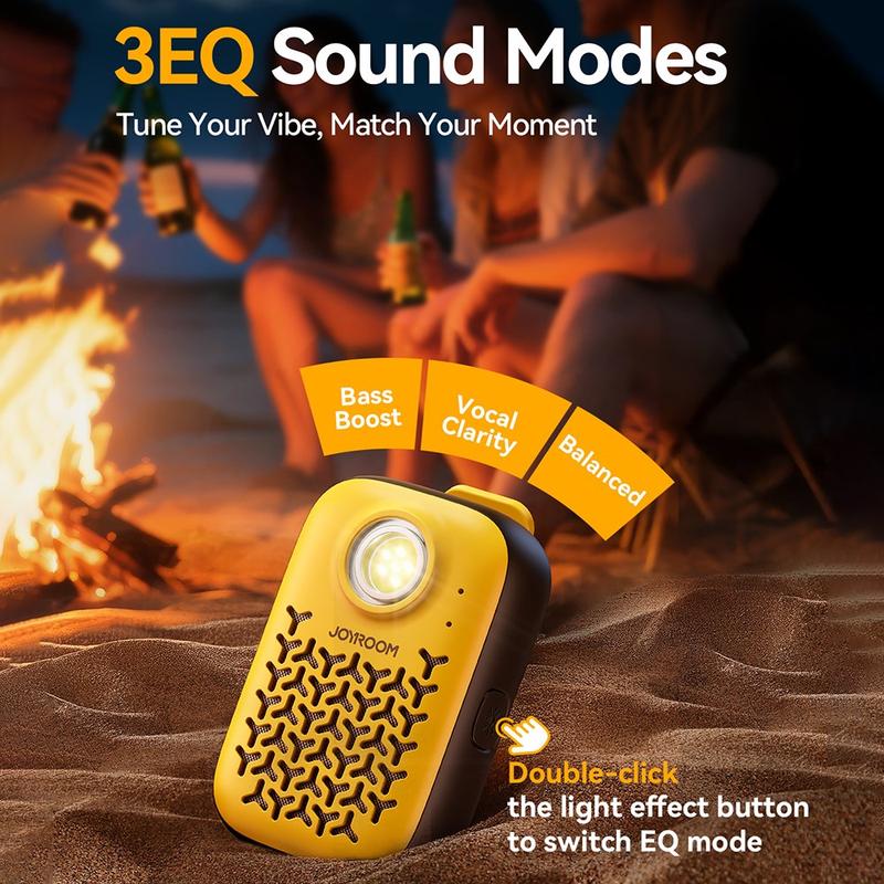 Emportez de la musique, de la lumière et des appels clairs n'importe où. Le Joyroom JR-MS03, très léger, ne pèse que 86 g, mais il est équipé d'un haut-parleur pleine gamme de 33 mm, de trois modes sonores commutables et d'une coque étanche IP67 qui résiste à la pluie, au sable et à l'immersion totale. Un clip très résistant et un aimant intégré permettent de l'accrocher à un sac à dos, à un guidon ou à une salle de sport, tandis que la lampe LED intégrée offre un éclairage à 50 %, 100 % et SOS pour les corvées de camping ou les urgences sur le bord de la route. La technologie Bluetooth 5.4 réduit les temps de latence et la technologie ENC filtre le bruit du vent et de la foule pour que les appels restent clairs, même dans les rues animées de la ville.