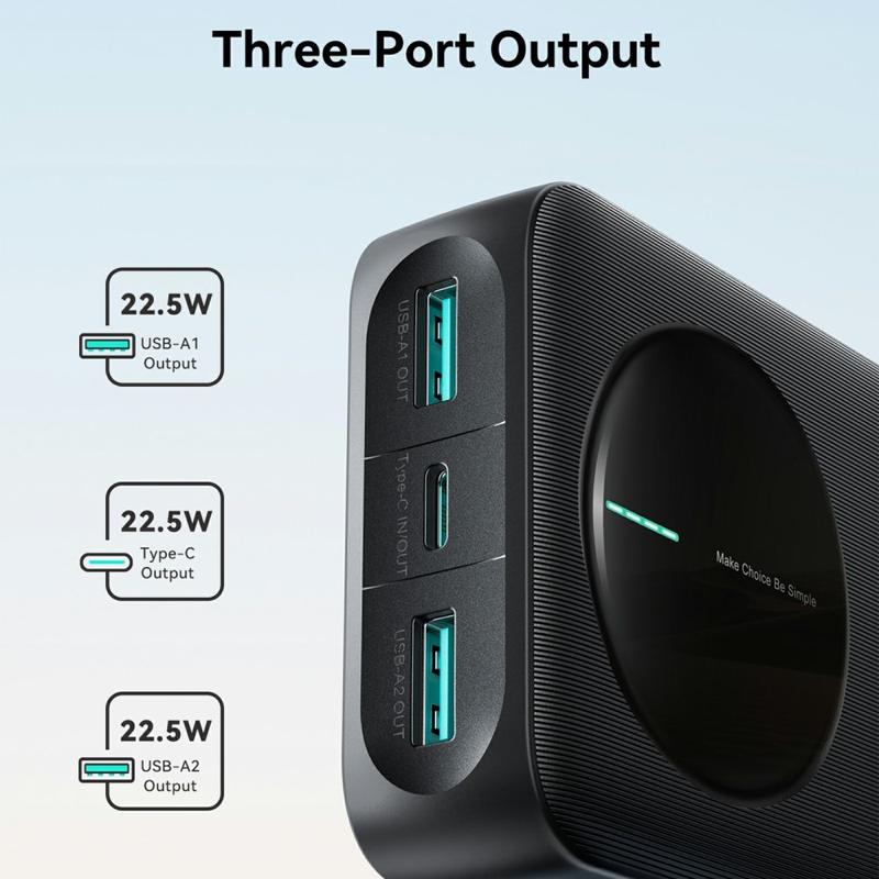 - 3 ports de sortie : 2× USB-A + 1× USB-C pour charger jusqu'à trois appareils à la fois