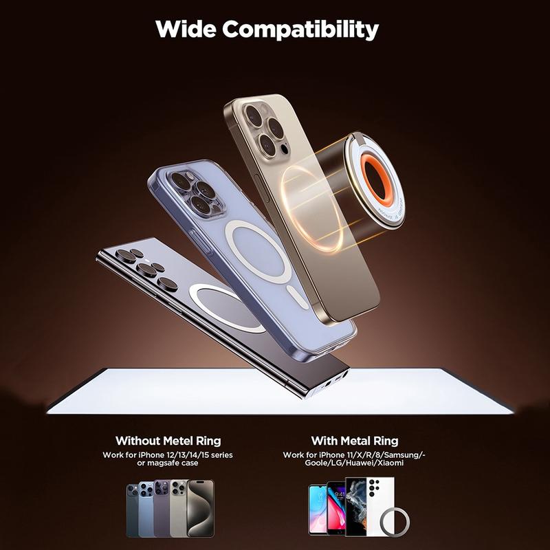 - Compatibilité : iPhone 12 / 13 / 14 / 15 series et étuis de téléphone magnétiques