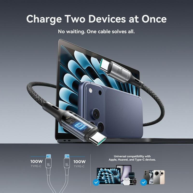 - Conception USB-C à double USB-C pour charger deux appareils à partir d'un seul câble.