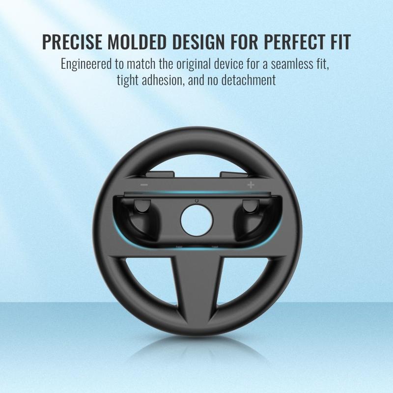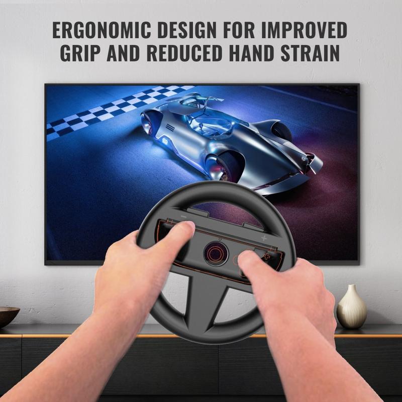 Transformez chaque tour en un véritable tour de piste grâce à cet ensemble de volants gauche et droit qui transforme en quelques secondes vos manettes Joy-Con en véritables bolides.