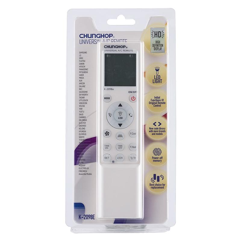 Gérez facilement votre climat intérieur avec la télécommande universelle pour climatiseur CHUNGHOP K-2098E. Conçue pour fonctionner avec une grande variété de marques de climatiseurs, cette télécommande offre un écran LCD clair et une disposition simple des boutons. Que vous remplaciez une télécommande perdue ou que vous recherchiez une télécommande de secours polyvalente, la K-2098E vous permet de régler rapidement et sans problème la température, la minuterie et bien plus encore.