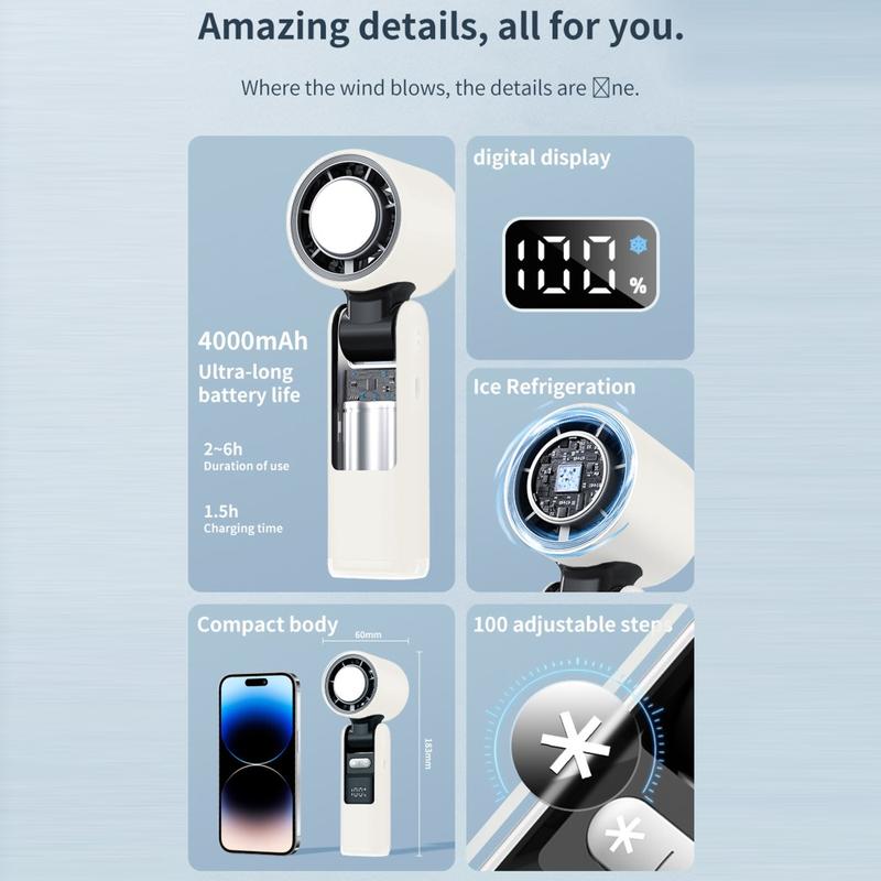 K-801 Ventilateur de poche à compression de froid - Rafraîchisseur portable à 100 vitesses avec affichage numérique de la batterie et technologie de glace semi-conductrice, rechargeable par USB-C.