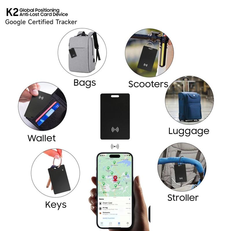 K2 Card-Style Smart Tracker pour Android Find My Device - Localisateur portable antiperte avec appairage sécurisé, 100mAh