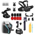 • Kit d'accessoires 26 en 1 pour caméra d'action GoPro - sangle de poitrine, sangle frontale, perche de flottabilité, support menton et ensemble de fixations multiples