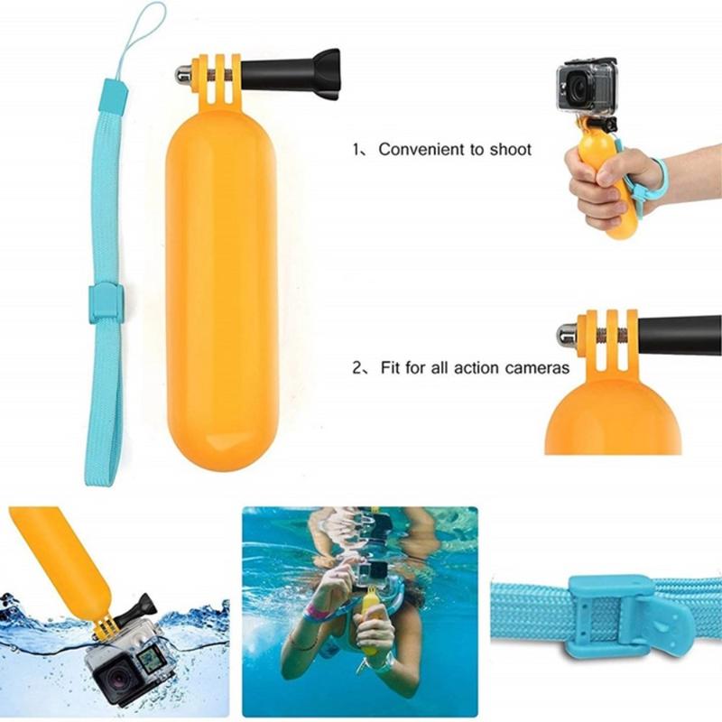 La tige de flottabilité incluse est idéale pour les sports nautiques, car elle aide votre caméra à rester à flot et la rend plus facile à repérer lorsque vous filmez dans une piscine, un lac ou la mer.