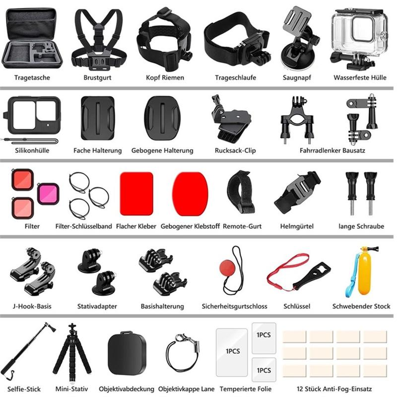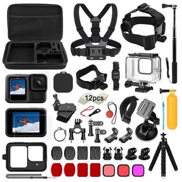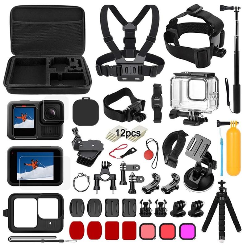• Kit d'accessoires 39-en-1 pour GoPro Hero13 Black - Boîtier étanche, sangle de poitrine et de tête, selfie stick, supports + 9H Screen Protectors