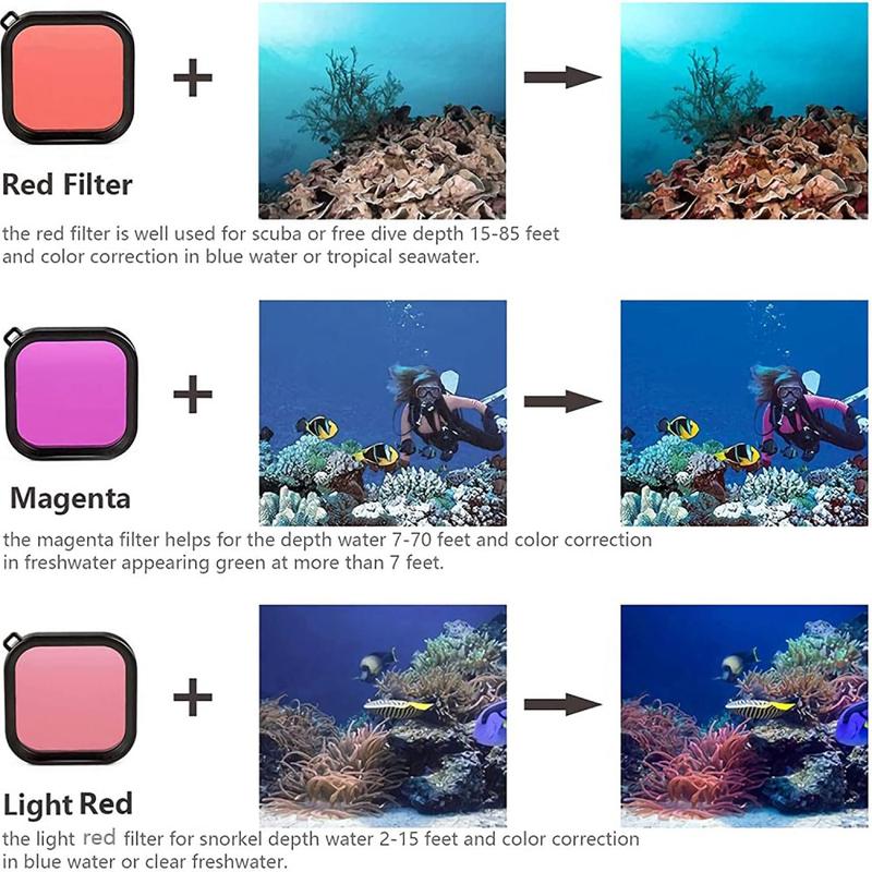 - Filtre rouge pour 4,57 à 25,90 m dans les eaux bleues ou tropicales